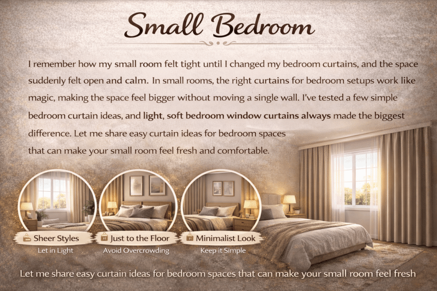 I remember how my small room felt tight until I changed my bedroom curtains, and the space suddenly felt open and calm. In small rooms, the right curtains for bedroom setups work like magic, making the space feel bigger without moving a single wall.