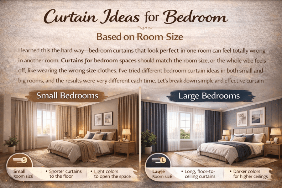 I learned this the hard way—bedroom curtains that look perfect in one room can feel totally wrong in another. Curtains for bedroom spaces should match the room size, or the whole vibe feels off, like wearing the wrong size clothes. I’ve tried different bedroom curtain ideas in both small and big rooms, and the results were very different each time.